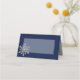 Placa de lugar azul escura e escura elegante com gráficos de uma área de texto enquadrada em prata e um tom prateado e um floco de neve de joias, na frente. Personalize o texto personalizado, na parte traseira do cartão, para ler o que você deseja. Personalize a frente de cada placa, manualmente, para a sua recepção de casamento.