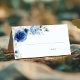 Cartão de mesa de casamento floral azul moderno que inclui os nomes da noiva e do noivo, juntamente com a data do casamento.