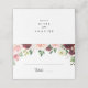 Este cartão de casamento floral de primavera burgundy é perfeito para um casamento simples. O design pintado à mão apresenta folhas verdes, cor-de-rosa deslumbrante, pincelada, púrpura, vermelha, branca e lenhosa, pessoas bem organizadas em pequenos buquês fofos. Personalize a parte de trás do cartão de lugar com os nomes da noiva e do noivo e a data.