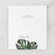 Estes cartões de lugar dobrados apresentam as plantas de Monstera na frente e um padrão vegetal tropical no verso. As diretrizes o ajudarão a escrever o nome do convidado e o número da tabela.