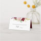 Este cartão vermelho de casamento tropical e romântico é perfeito para um casamento russo. O design de marsala artístico bordo apresenta rosas de aquarela, verdes, cor-de-rosa, burgundy e blush, combinados com verde, bem arrumados num buquê de flores gracioso e radiante. Personalize a parte de trás do cartão de lugar com os nomes da noiva e do noivo e a data.