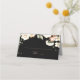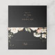Este cartão de casamento floral real preto é perfeito para um casamento moderno. A design apresenta cor-de-água rosa, pincel e flores brancas elegantes com folhas esmeraldas verdes. Personalize a parte de trás do cartão de lugar com os nomes da noiva e do noivo e a data.