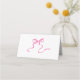 Mesa Cartão de lugar dobrado com laço rosa caprichoso