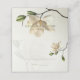 O "Cartão de Lugar Dobrado da Magnólia Oriental Elegante" é uma graciosa adição à sua decoração de eventos. Com um charmoso design de magnólia branca, esta placa de lugar dobrada adiciona um toque de elegância a qualquer configuração de mesa. O motivo inspirado em oriental traz um senso de tradição e sofisticação para o seu evento. Feito com materiais de qualidade superior, este cartão de lugar é na moda e durável. Mande seus convidados para seus assentos em estilo com o Elegante Oriental Magnolia White Folded Place Card.
