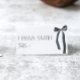 Estes cartões de lugar são uma bela decoração para o seu chá de panela temático "Ela está Ligando o Nó" com laços pretos góticos.