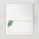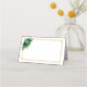 Este cartão de nome dobrado é mostrado em branco básico com um lindo spray floral em cores de verde esmeralda e acentos dourados.
