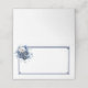 Este cartão de nome dobrado é mostrado em branco básico com um lindo spray floral em cores de azul profundo.
