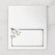 Este cartão de nome dobrado é mostrado em branco básico com um lindo spray floral de orquídea branca em uma moldura de acento preto.