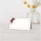 Este cartão de nome dobrado é mostrado em branco básico com um lindo spray floral em cores de vermelho profundo e acentos dourados.