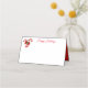 Esse cartão de lugar dobrado é mostrado em branco básico com um interior vermelho com uma impressão festiva de canas doces festivas. Personalize este item ou comprar como está.