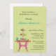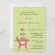 Um convite à moda para um almoço do chá de panela ou da dama de honra com a mesa cor-de-rosa da sobremesa, a bandeja estratificado com cupcakes, as pastelarias e os bolos no fundo verde com design floral pálido.