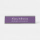Esta placa de nome de na moda é fácil de personalizar usando o modelo de personalização on-line antes de fazer o pedido. Há campos de texto para um nome e um título de cargo (ou um nome e um departamento/equipe, se preferir). Se desejar fazer ajustes avançados, como alterar o fundo roxo escuro para uma cor da empresa, clique na opção "Editar usando a ferramenta Design" para "Personalizar ainda mais". A placa de nome está disponível na escolha de dois estilos (como uma placa de nome da mesa ou como uma placa de nome de porta) e uma escolha de acabamentos e tamanhos de cor.