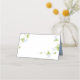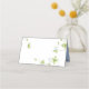 Cartão de lugar dobrado para casamento bonito feito em branco, com gráficos de delicadas vinhas verdes e folhosas com flores azuis. O dentro da placa de estilo de barraca é feito em azul claro. Personalize manualmente, para cada pessoa na sua recepção.