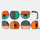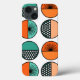 Essa capa de telefone tem um design moderno do século médio de meio círculo em cor de rosa e cor de laranja com metade de estouro em alguns e minúsculos círculos repetitivos em outros.