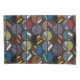Essa fronha tem um design moderno do século médio de metades ovais, algumas sólidas e algumas listradas, em cores masculinas em um campo de cinzas escuras.