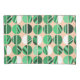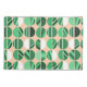 Esta fronha tem uma design de metade oval moderna do século médio, algumas sólidas e algumas listradas, em tons de verde num campo de laranja claro.