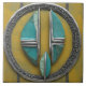 A luxurious design featuring a graceful turquoise stone arranged over a richly yellow marbled backdrop and a silver round frame. Perfect for upscale home décor, gifts, and personalized accessories.