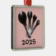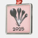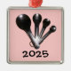 Fotografia das colheres-medida espalhadas em fundo rosa (personalizável). Ano/texto personalizável.