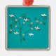 Lindas pombas brancas voam por uma árvore marrom com flores brancas e amarelas nela. Este ornamento é uma decoração de excelente para todos os dias do ano!