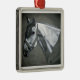 Desenho original de equinos por Sandra Gale. Este dramático retrato equino de um cavalo puro-sangue cinza exibido em um ornamento será um presente favorito para qualquer entusiasta dos cavalos. Um estilo único que todos amarão.