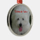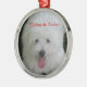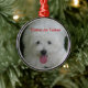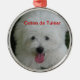 A foto de um filhote de cachorro de de Tuléar do algodão em uma prata ribboned o ornamento.