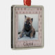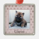 Comemore as férias com seu animal de estimação com este Enfeites de natal de fotos de cachorro chique e fabuloso. Este design apresenta um fundo cor-de-rosa de duas tonalidades com um lugar para colocar uma fotografia do seu animal de estimação e personalizar com o nome do seu animal de estimação.