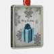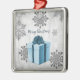 Desdecore sua árvore de Natal nesta temporada de festas com um Ornamento de Férias de Natal Azul. O design de ornamento apresenta um presente de Natal embrulhado vibrante, adornado com cinzas e flocos de neve brancos contra um fundo de nuvens de cinzas. Itens adicionais de presentes e feriados disponíveis com este design também.