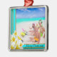 Flores da plumeria havaiana e cores aqua enquadram esse Enfeites de natal de modelo de foto. Personalize o texto conforme desejar. Olhar prateado, quadrado, tropical, o keepsasasaké pendura com uma fita vermelha.