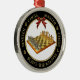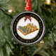 Elegante "Mestre de Xadrez", enfeite prateado. Um belo presente de manutenção para um membro da família ou um amigo que gosta de jogar xadrez. O ornamento apresenta um dentro de xadrez no centro do quadro do ouro com uma redação circular dourada que diz "Mestre de Xadrez" incluindo um símbolo de cada peça de xadrez. Este design também está disponível em nosso compro como um ornamento cerâmico personalizado de dupla face.
