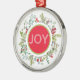 Um cartões de natal simples e moderno sobre sua escolha de adorável ornamento. Este bonito pequeno cortador de árvores apresenta uma coroa de água alegre com uma mensagem de feriado JOY! (NOTA: alguns estilos disponíveis com mensagem personalizável no ornamento inverso). Faz um presente de guardiã. Paz, amor e alegria para você este Natal e sempre.