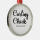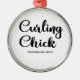 Ornamento do Pintinho de Curling para curadores ou ventiladores. Super presente! Curling, um esporte de inverno menos conhecido jogado no gelo. Curlers ou torcedores de curling vão desfrutar deste ornamento divertido. Pegue isto para o pintinho de enrolar da sua vida!