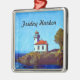 Este ornamento quadrado apresenta o farol do Kiln Limão no Porto de Sexta-feira, localizado na Ilha San Juan no Estado de Washington. O belo vermelho profundo ou a cupula contrasta com a cor azul branca e adorável abaixo. A Luz do Quilão Limão é uma ajuda de navegação que funciona, localizada no Ponto Quilar Limão, que ignora a Baía de Man Morto, no lado oeste da Ilha San Juan. Este ornamento tem o farol e "Sexta-feira Porto" na frente com um fundo sólido. Outros estilos de ornamentos estão disponíveis com a mesma cena.
