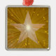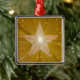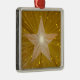 Design moderno com ouro brilhante e brilhante e estrela branca num fundo dourado brilhante. O ornamento da árvore de Natal com um design personalizável em ouro e branco para você personalizar com seu próprio texto, imagens e ideias. Criado por Jess Perry usando fotografias originais e técnicas digitais.