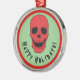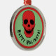Traga alguma alegria assustadora à sua decoração de férias com este adorável ornamento de metal redondo, com um conjunto de crânio vermelho assustador contra um fundo verde ousado, e a mensagem sinistra "Feliz Natal!" Perfeito para aqueles que amam uma mistura de horror e diversão festiva, este ornamento adiciona um toque gótico a qualquer árvore de Natal. Seja você fã de crânios ou alguém que gosta de vibrações assustadoras e assustadoras, esta é uma decoração obrigatória. Ele também faz um presente de excelente para o amante do horror em sua vida, oferecendo uma reviravolta única na decoração tradicional de feriado com seu estilo escuro e inspirado no gótico.
