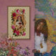 O Rosa santo de Lima está rodeado por um arranjo de lindas flores coloridas e trabalho de rolagem de ornamentados. Um pano de fundo da broca amarela complementa a elaborada colagem de ilustração.