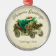 Esta design adorável apresenta um carro vintage decorado com sombra e bagas. No carro há uma árvore de Natal fresca com uma etiqueta de SÓDIO. O fundo também como um pergaminho vintage. Na parte inferior há uma caixa de texto que permite personalizar seu ornamento.