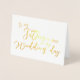 Um belo cartão de dia de casamento mostra o texto em um belo estilo escrito. PERSONALIZAÇÃO: se você precisar de personalização de design, entre em contato comigo via bate-papo; se precisar de informações sobre seu pedido, opções de envio etc., entre em contato com o suporte da Zazzle diretamente https://help.zazzle.com/hc/en-us/articles/221463567-How-Do-I-Contact-Zazzle-Customer-Support-. Verifique se há itens correspondentes na coleção como adesivos da lista de convidados.