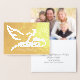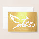 Esta simples design, chamada "Gold Foil Peace Dove", é uma bela maneira de desejar aos seus amigos e família boas festas. Na frente diz Feliz Natal com uma bela pomba e a palavra Paz em um roteiro bonito à direita. Dentro há um lugar para você incluir seu cartões de natal - sinta-se à vontade para deixá-lo como está ou mudá-lo como quiser. Acima disso, há um lugar para sua foto ou exclua-a se quiser. Está definido para impressão no white paper, mas você também pode mudar isso.
