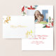Este cartão de Natal apresenta um design floral moderno e uma folha de ouro real na frente. Personalize a dentro com sua própria foto e texto.