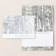 Este belo cartão de compaixão impresso em folha de tons e tons apresenta a garantia que Deus deu a Joshua e aos Israelitas, repetida no Novo Testamento em Hebraicos: Nunca vou deixá-los; nunca vou me esquecer de vocês. Árvores prateadas contra fundo de papel de cinza. (Verso Bíblia encontrado em Joshua 1:5 e Hebraicos 13:5.)
