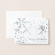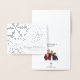 Um cartão de Natal clássico com folha de prata real no exterior com flocos de neve brilhantes e um lugar para adicionar o ano ou o nome da sua família. Dentro, adicione uma foto e uma mensagem personalizada, bem como desconecte-se personalmente.