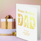 Folha de ouro, cartão de aniversário de baskeball para Pai com seu dentro de saudação personalizado. A frente do cartão é escrita em tipografia de folha de ouro, decorada com jogadores de basquete. O texto diz: "Feliz pai de aniversário ... que todos os seus porcos se realizem". O dentro de mensagem é totalmente editável.