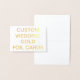 FÓLEO DE OURO IMPRESSO REAL personalizado NO MINI SIZE 5" x 3,5" (LANDSCAPE) CORRESPONDE AO Modelo DE Vazio DE CARTÃO DE VERIFICAÇÃO BRANCA. Design, crie, faça o seu. Suas imagens e texto na parte externa (frente e verso) da placa são impressos usando o processo de impressão de tinta metálica, o padrão de semitom e as designs no dentro impressas em cores vivas do cheio CMYK impressão. Envelope branco padrão incluído ou atualizado para envelopes coloridos correspondentes. 3 Opções de Papel de Cartão: Matte White Padrão, Cinza Premium, Kraft Premium. 3 Opções de tamanho de placa. Opções de Tinta metálica: DOURADA ou SILVER. PAPEL BRANCO MATERIAL PADRÃO: 17,5 pt de espessura/120 lb de peso / 324 GSM. Acabamento branco claro, não revestido com textura de casca de ovo, fácil de escrever e não borra. Impresso e feito nos EUA. Melhor para cartões "Você será minha madrinha", programas de casamento, cartas de agradecimento, cartões de Natal, cartões de aniversário, cartões de aniversário, cartões de aniversário, cartões de nota de papel de carta dobrados...