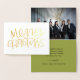 Folha de ouro festiva destaca esta placa de cartões de natal dobrada com dentro fotográfico opcional.