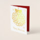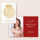 Uma bolbo de árvore Holiday à moda antiga com um arco bonito é a atração de folha de ouro na frente deste belo cartão de saudação de modelo fotográfico. Seu texto personalizado está na parte inferior e em seis campos facilmente personalizados no dentro, que é vermelho brilhante Feriado. Sua própria foto tira palco central na dentro da esquerda. Uma saudação adicional está na folha de ouro no verso.