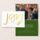 Folha de ouro festivo "JOY" destaca esta placa de cartões de natal dobrada com dentro de foto opcional.