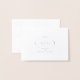 Um belo cartão de casamento de folha prateada com iniciais monogramadas numa coroa elegante tradicional. Um design de cartão de casamento branco e prateado com tipografia clássica minimalista. A tipografia tradicional e a coroa úmida criam um eterno elegante design de lugar para casamento de folha prateada.