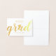 Cartão de saudação de formatura 'Brindes ao Formado' minimalista em folha de ouro sobre fundo branco. Com estilo de tipografia moderno, chique e elegante. Personalize com o nome do formando, ano e nome da escola. O interior é em branco e pode ser personalizado com sua própria mensagem e fotos.