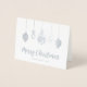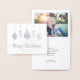 Celebre a temporada com este cartão de Natal de folha de prata na moda! Este design apresenta gráficos animados de ornamento de feriado com uma letra de script fofinha " Feliz Natal ". O dentro é projetado com modelo de foto e uma mensagem personalizada.