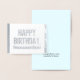 Este design de saudação de aniversário de folha prateada apresenta a mensagem "HAPPY BIRTHDAY" na frente, onde o nome pode ser personalizado. Há uma mensagem personalizada no dentro. Pode ser usado para desejar um feliz aniversário a alguém.